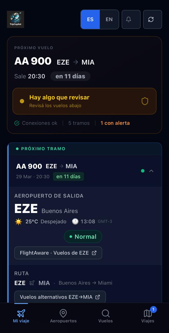 TripCopilot: TripCopilot monitorea la FAA las 24hs y te notifica al instante